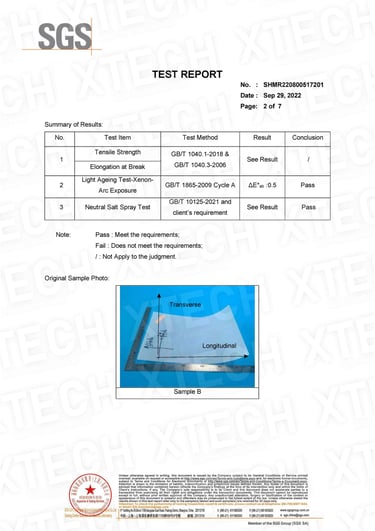 SGS is the world’s leading inspection, verification, testing, and certification company. With a reputation for excellence and reliability, SGS ensures that products and services meet the highest standards of quality and safety. Our XTECH Paint Protection Films are SGS certified, confirming that they adhere to stringent industry standards and provide superior performance and durability.